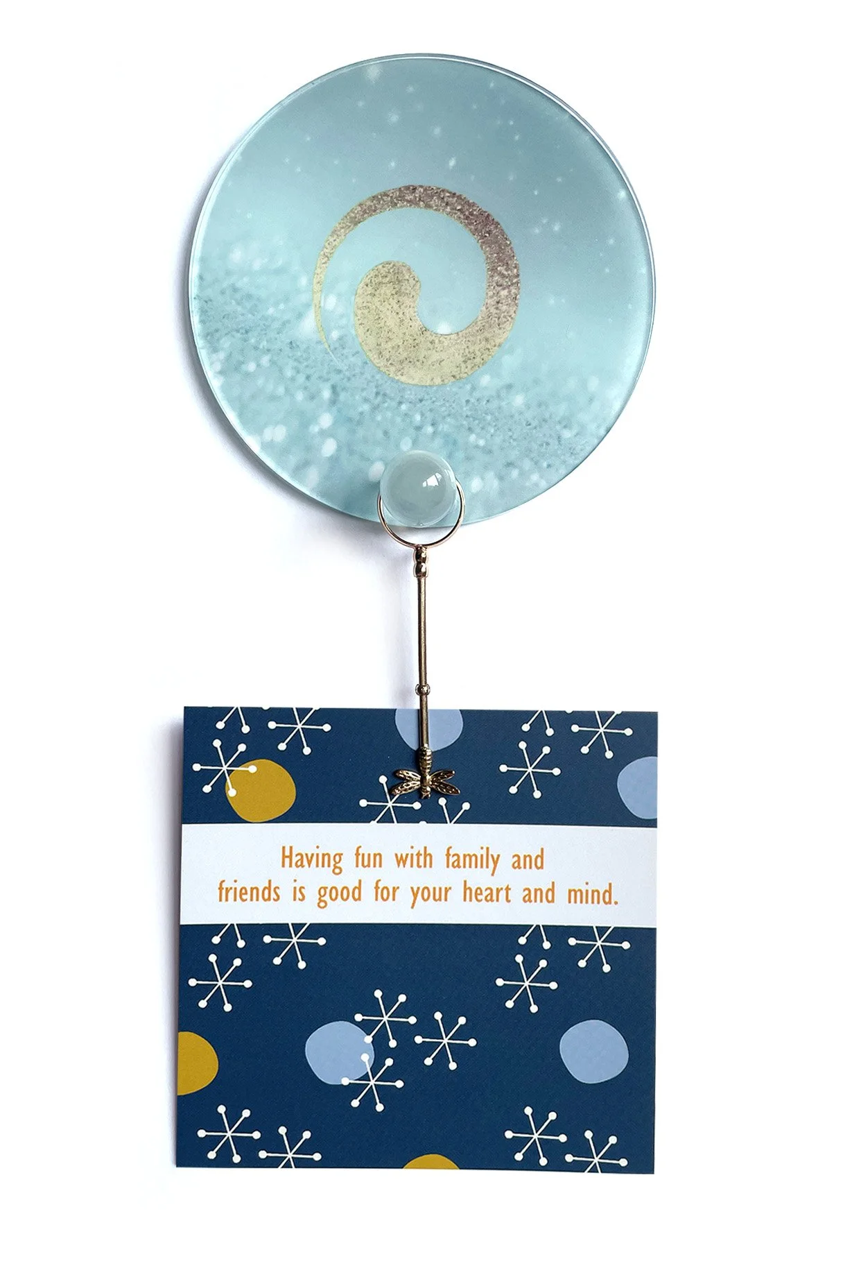 A Simple Angel Collection: One light Blue Yin/Yang Disk self-adhesive wall hanger, one gold dragonfly clip, and 20 inspirational cards.